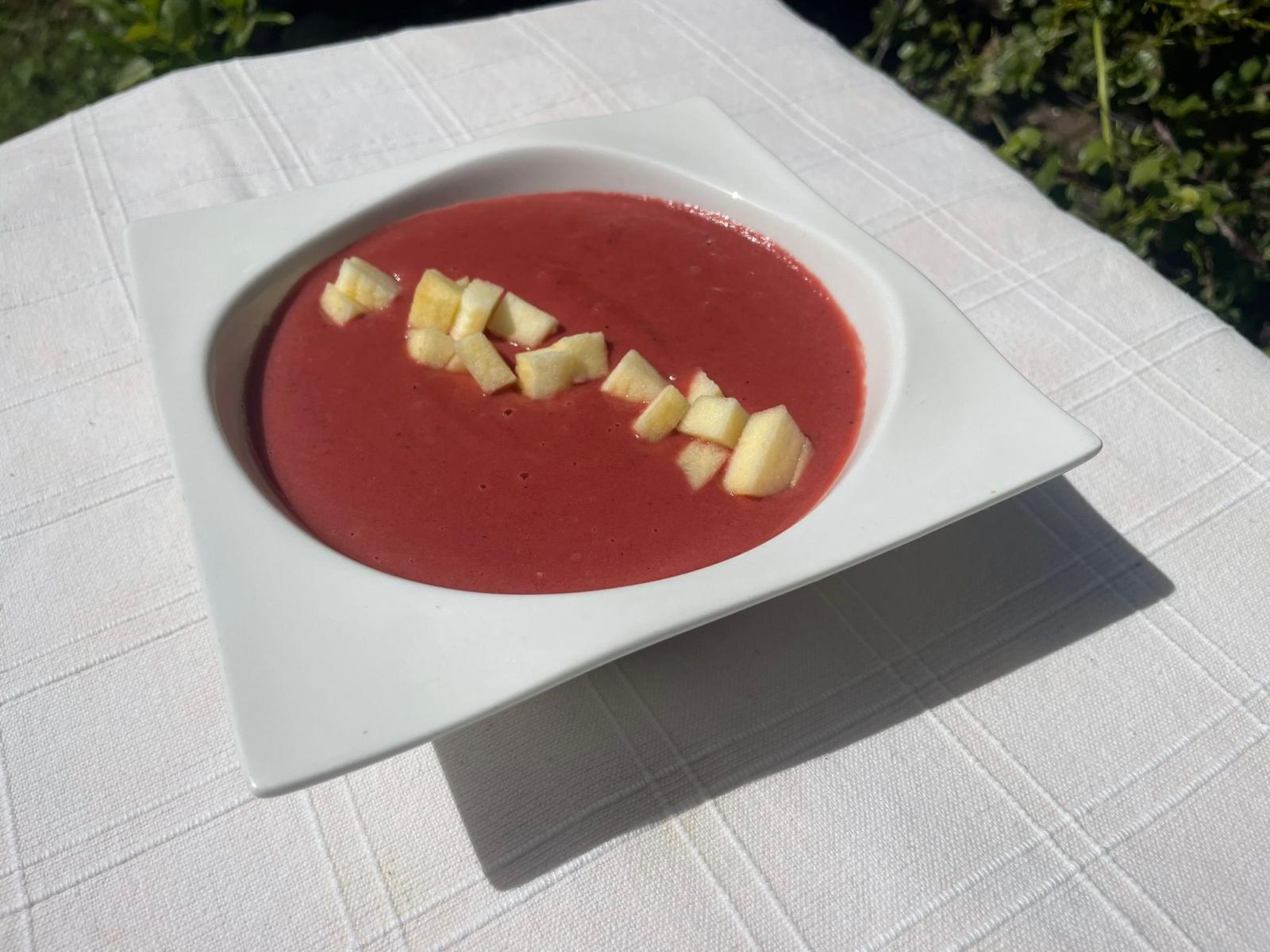Y una de estas recetas, con las que nos han sorprendido en estos días, ha sido esta crema de remolacha y leche de coco, que estaba deliciosa.