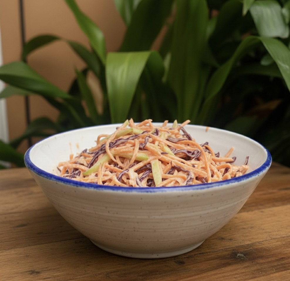 Ensalada de invierno de lombarda, manzana y zanahoria